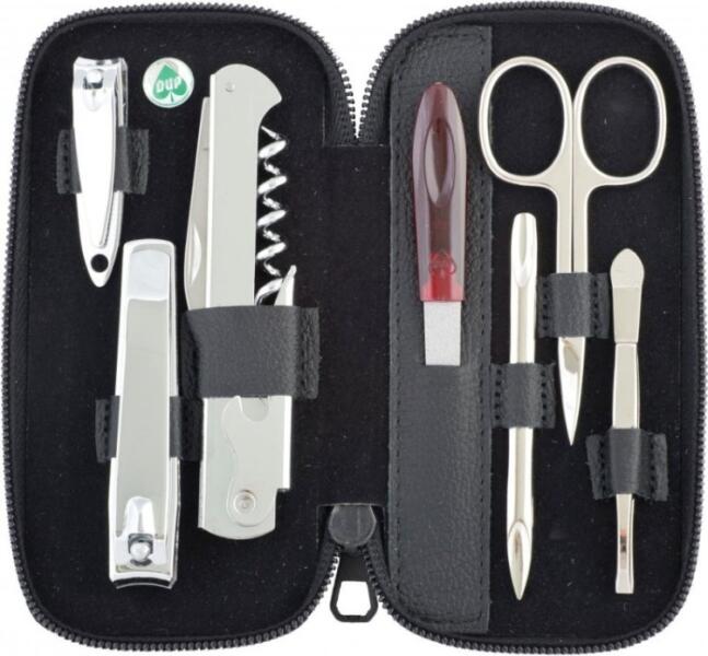 DUP HYNEK férfi manikűr készlet solingeni ollóval. Elsősorban férfiak számára összeállított 8 részes manikűrkészlet cipzáras, fekete bőrtokban. DUP és solingeni eszközökkel.